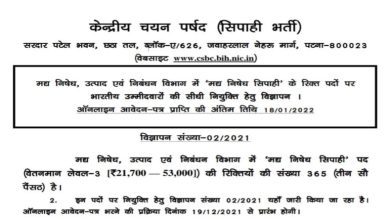 सेंट्रल सिलेक्शन बोर्ड ऑफ कॉन्स्टेबल (CSBC) ने कांस्टेबल भर्ती के लिए नोटिफिकेशन निकाला है। 365 रिक्त पदों को भरने के…