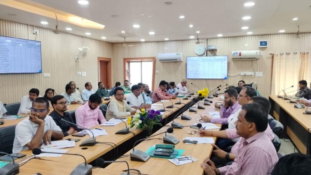 मधुबनी समाहरणालय में साप्ताहिक बैठक में जिलाधिकारी ने विभागों की कार्यप्रगति, भूमि उपलब्धता, जन शिकायतों और लंबित न्यायालय मामलों पर समीक्षा कर निर्देश दिए।