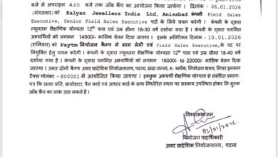 पटना : जिला पदाधिकारी, पटना द्वारा किसानों के ईकेवाईसी एवं फार्मर आईडी निर्माण हेतु 6 से 10 जनवरी 2026 तक…